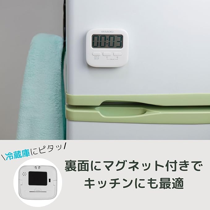 HATUSOKU サイレントモード搭載 光るタイマー キッチン 勉強 学習 マグネット スタンド 吊り下げ (ホワイト)