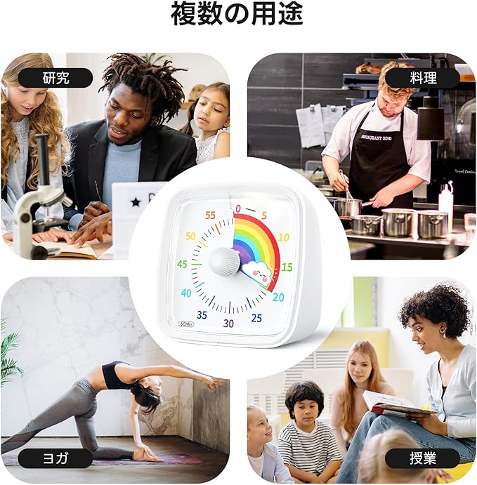 効率的な時間管理ツール : あなたやあなたのお子さんは、先延ばしや時間感覚のなさに悩んでいませんか?Yunbaoitタイマーは時間感覚を養うことができます。このタイマーは視覚的な時間管理ツールで、色のついた円盤が消え、時間がはっきり消えるので、時間が目に見えるように感じられます。時間を感じることで、勉強や仕事を効率的に進めることができます。