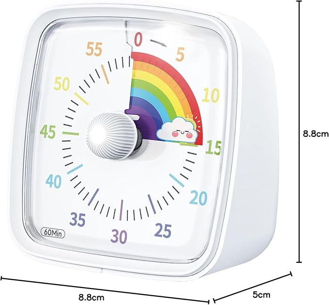 タイマー, Yunbaoit 60分ビジュアルタイマー(子供用、大人用)、家庭、キッチン、学校、職場で使用可能 (白い虹)