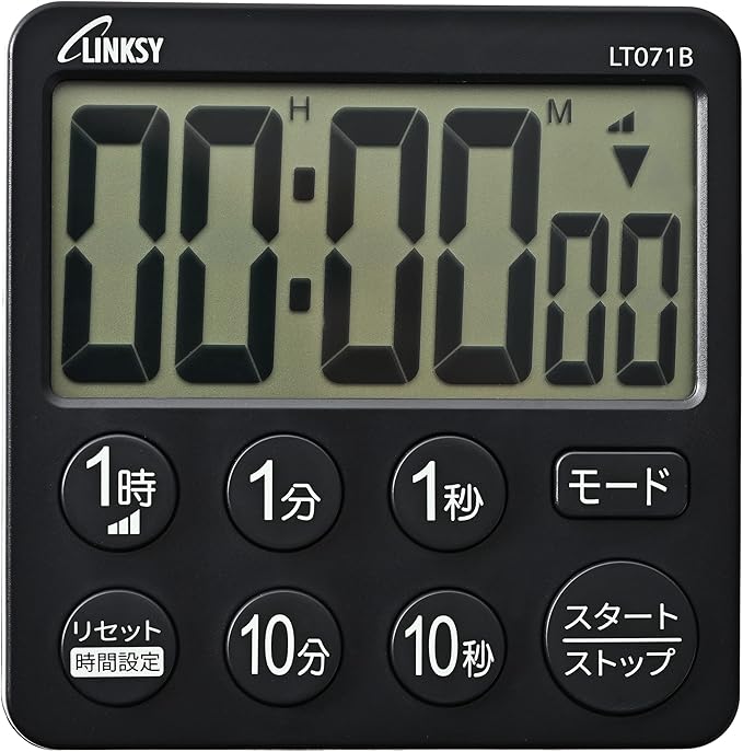 LINKSY 大画面タイマー 見やすい6桁表示! ! 時計付 LT071BA 7.8 7.8 1.7cm ブラック