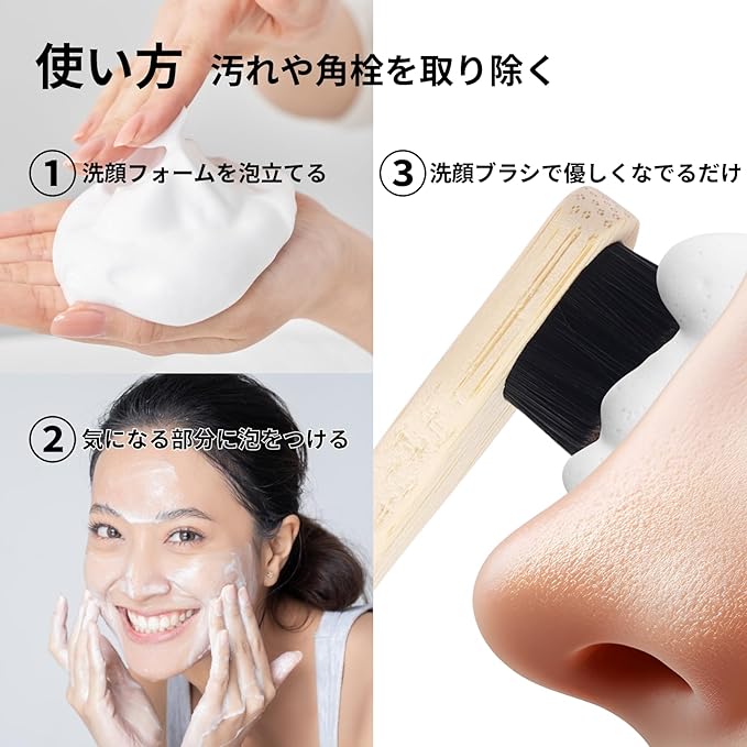 ✅1本0.1mm以下の超極細毛が毛穴の奥に入ることで汚れをかき出します。