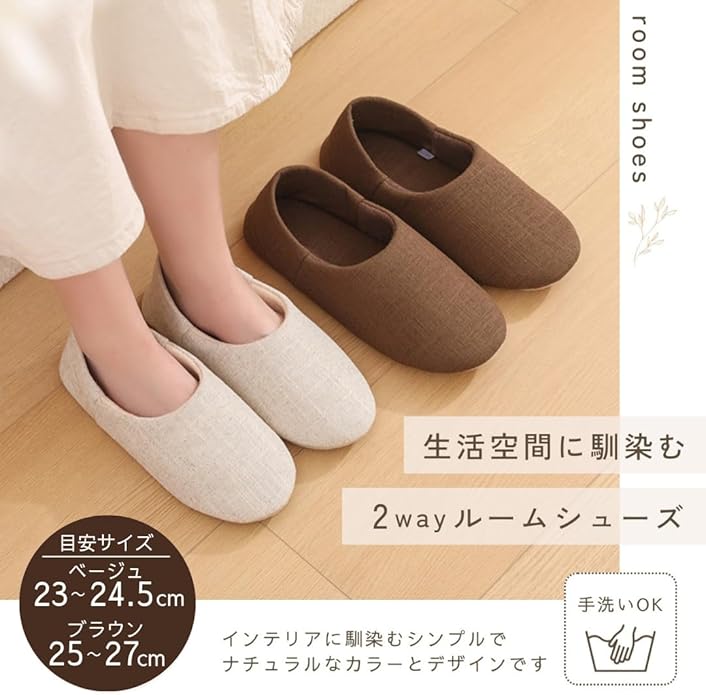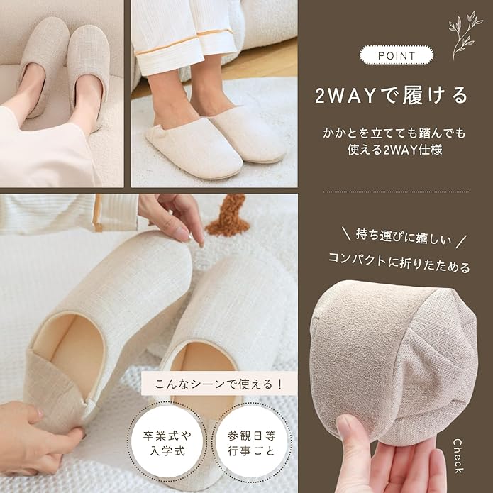 [UNiELEMENT] スリッパ かかと付き レディース 2WAY 室内履き ルームシューズ 静音 軽量 洗える 携帯スリッパ かかとあり