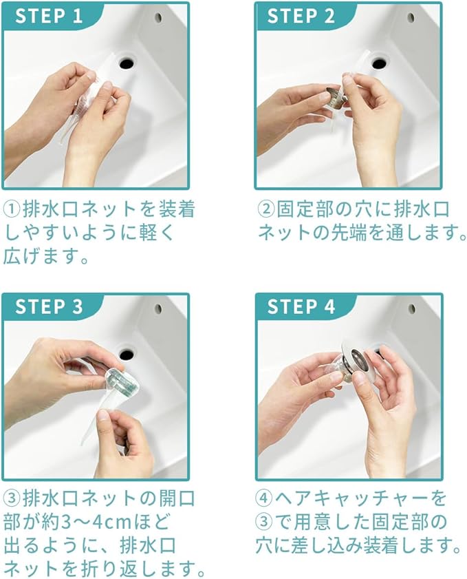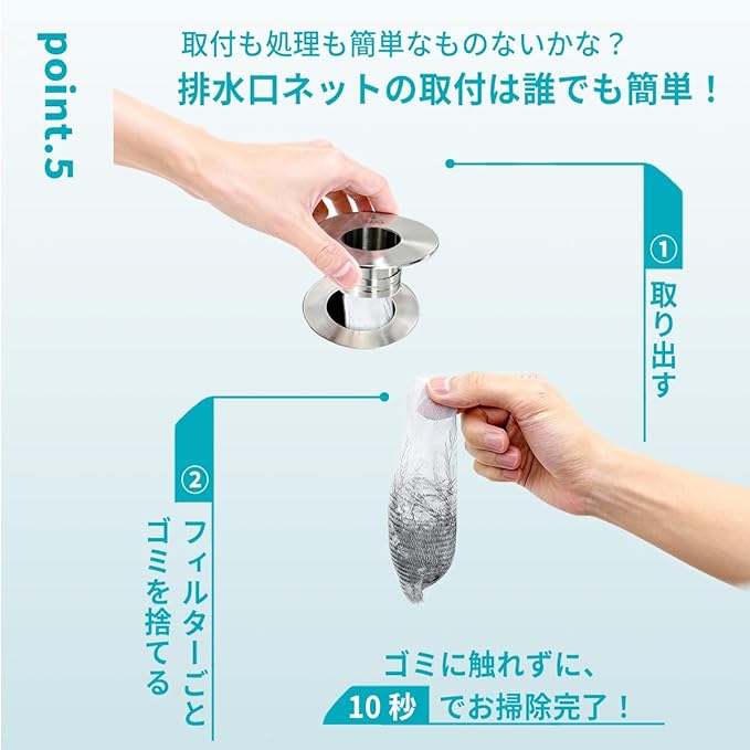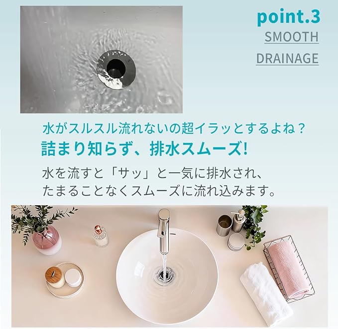 【ネット交換式でスムーズ排水をサポート】 髪の毛やゴミをネットで受け止め、排水口の流れを妨げにくくして日常のストレス軽減に役立ちます。