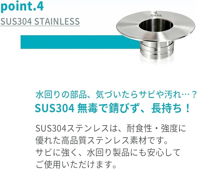 【SUS304ステンレス採用】 錆びに強いSUS304素材で水回りに対応。長く使いやすい耐久性に配慮しました。