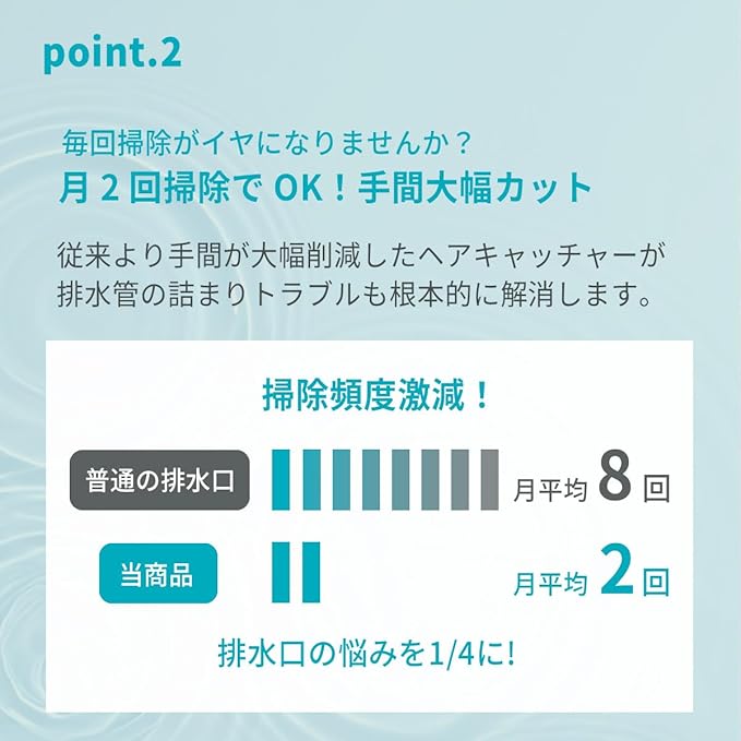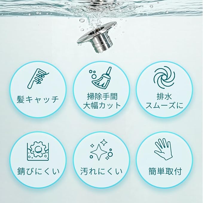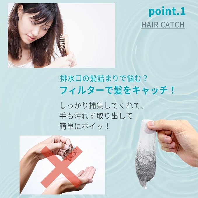 【髪・細かなゴミをしっかりキャッチ】 長い髪はもちろん、短い毛や細かなゴミも捕集しやすい構造で、排水口まわりを清潔に保ちやすくします。
