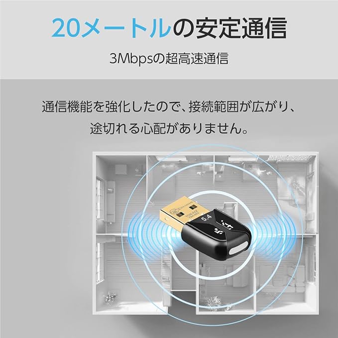 【高速通信】Bluetooth 5.4で最大20mの安定したワイヤレス通信を実現。