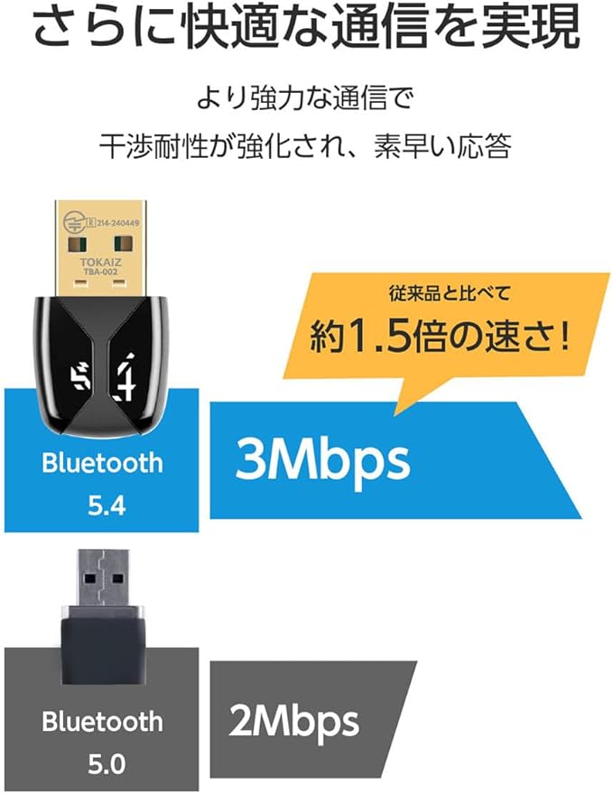 TOKAIZ Bluetooth アダプター5.4 レシーバー USB 子機 ドライバー不要 装着即使用 LEDライト接続感知 ブルートゥース ワイヤレス パソコン/タブレット イヤホン コントローラー マウス キーボード 7つのディバイス追加可能 Windows11 10 8.1 7 HOT保証 TBA-002