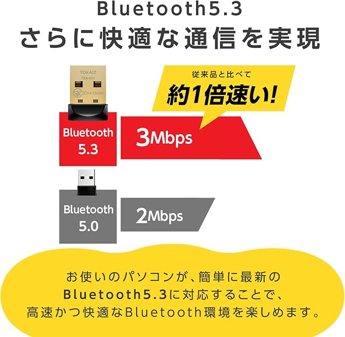 TOKAIZ bluetooth アダプター 5.3 レシーバー USB 子機 ドライバー不要 ブルートゥース ワイヤレス イヤホン コントローラー マウス キーボード 7つのディバイス追加可能 Windows 11 10 8.1 7 TBA-001