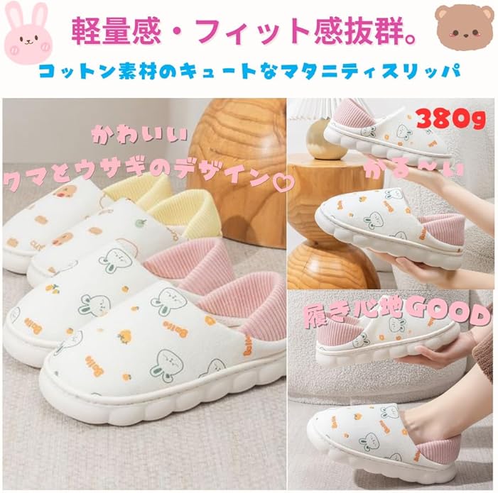 [ORIJIRI] マタニティ スリッパ 室内履き 妊婦 アニマル 靴 かかと踏める ルームシューズ レディース 滑り止め 入院シューズ