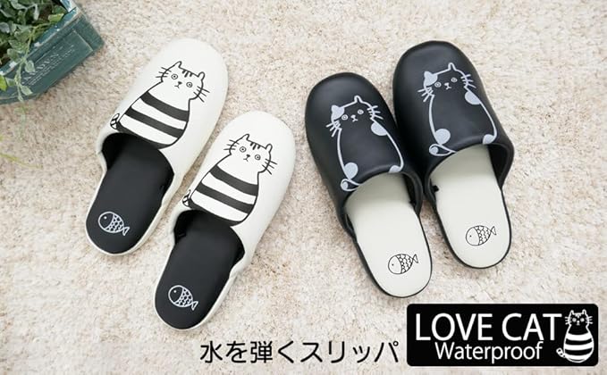 [オクムラ] LOVECAT猫ちゃんプリントソフトスリッパ (ホワイト)