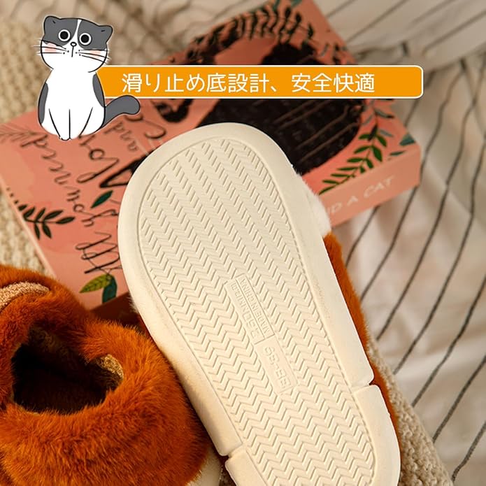 【 足元からじんわり温まる保温性】 内側全体に密集した極厚のフリース素材を採用しているため、驚くほどの保温性を発揮します。冷えやすいフローリングの上でも、足元からじんわりと持続的な温かさを保ち、冬場の室内を快適に過ごせます。まるで愛猫の温もりに包まれているような、ほっこりとした履き心地が堪らなくやみつきになります。