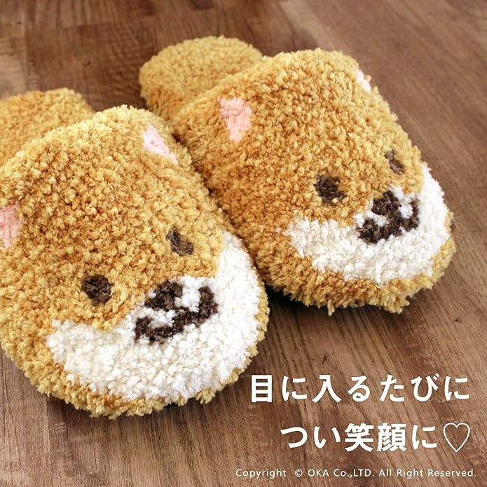 [オカ] ファンディット アニマル 洗えるスリッパ ブラウン(豆しば)(動物 ペット マメシバ)