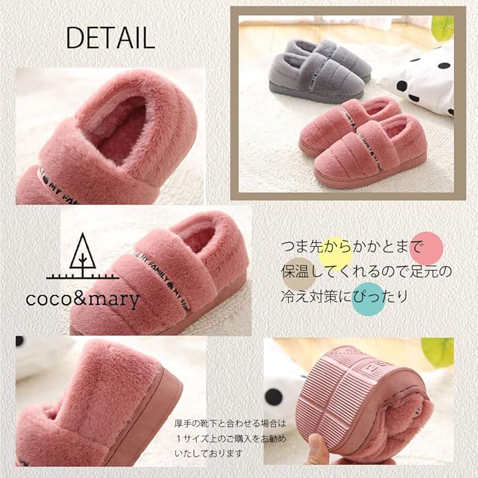 [ココマリ] あったか もこもこ ルームシューズ 男女兼用 スリッパ 暖かい 室内 ボア 防寒 靴 メンズ レディース 滑り止め