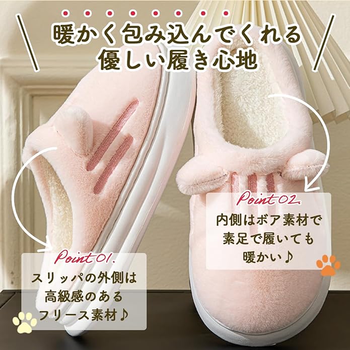 ✅【暖かく包み込んでくれる優しい履き心地】ルームシューズの外側には高級感のあるフリース仕様。内側ボア仕様で素足で履いても暖かいです。