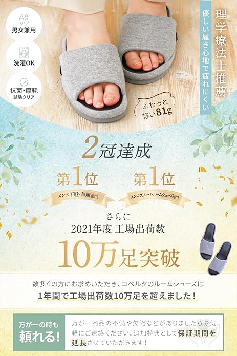 [Coperta] 【理学療法士推薦】スリッパ メンズ レディース すりっぱ 室内 洗える 【抗菌加工済 超軽量】 コペルタ ルームシューズ おしゃれ