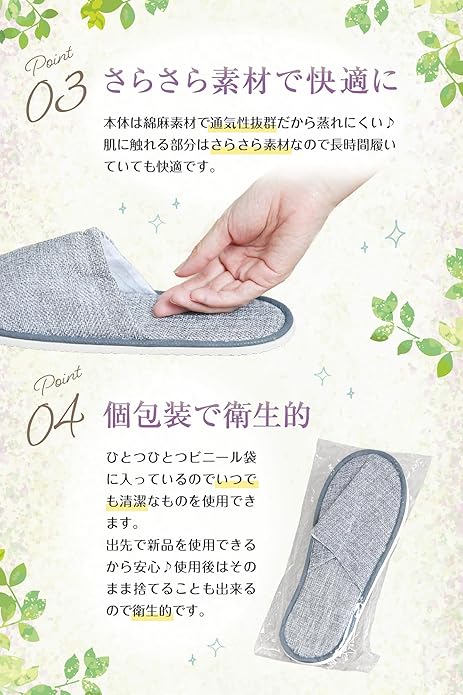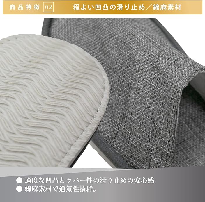【さらっと快適、高級仕様】素足で履いても快適な綿麻素材ですのでオールシーズン使えます。旅行先や職場、ご自宅使いで極上の一時を。機内などの移動中に履き替えても見た目がスマートで他の使い捨てスリッパのような安っぽさがありません。