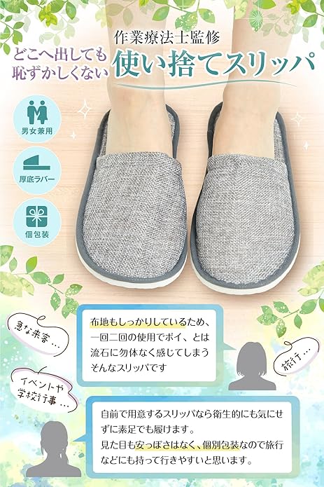 [ZEN-IN] スリッパ 使い捨て 【作業療法士監修】 来客用 防災 機内 簡易 災害 掃除 業務用 メンズ レディース 男女兼用 綿麻 個包装