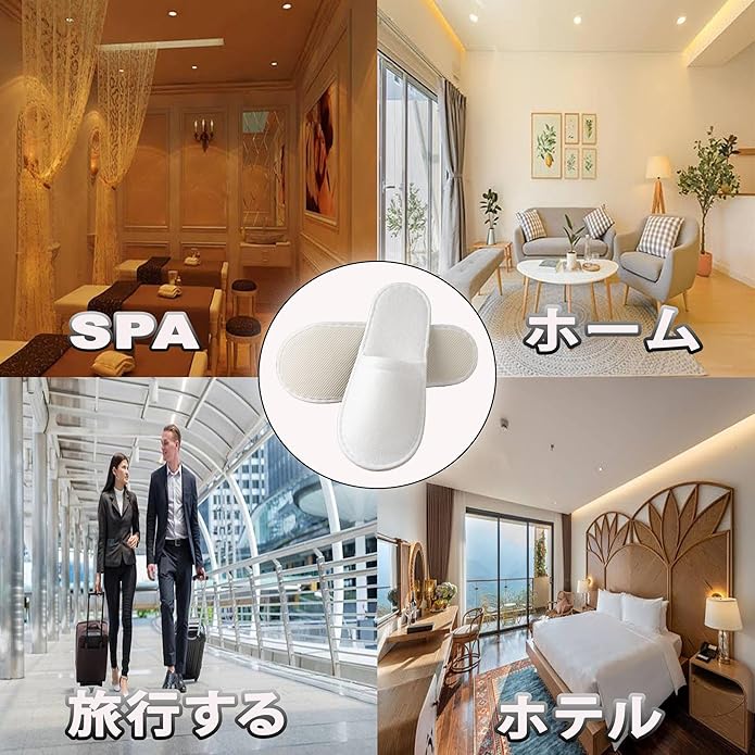 【適用範囲広い】:ホテル・旅館・夜行バス・住宅展示場・病院・モデルルーム・イベント会場・学園祭・文化祭等様々な場所に活躍します。部屋の掃除スリッパとしても使えます。 メイン素材: 分類外繊維(不織布)