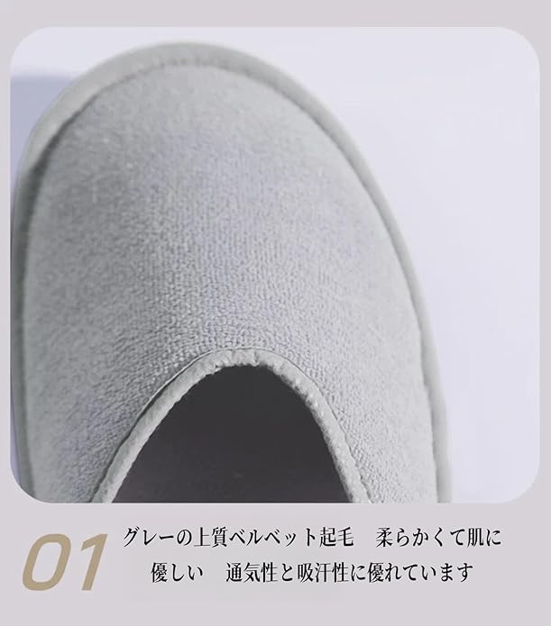 これらのスリッパは、室内で履くのに最適な軽量で快適な履物です。柔らかな生地で作られており、足に優しくフィットします。デザインはシンプルで洗練されており、どんな部屋の雰囲気にも馴染みます。旅行先のホテルや自宅でくつろぐ時に、足元を温かく包んでくれるでしょう。