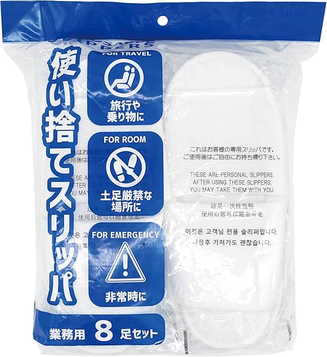 適応サイズ:約23~27cm / セット内容:使い捨てスリッパ 8足(1足ずつ個包装)