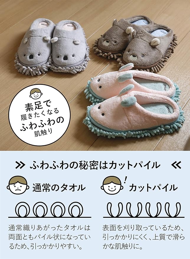 【ながら床掃除】履くだけで楽々床掃除が出来る、お掃除スリッパ。裏面のもじゃもじゃモップが、床の上のホコリや水分をキャッチしてくれます。
