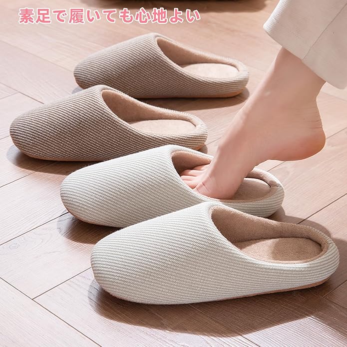 【シンプルなデザイン】インテリアになるおしゃれスリッパ!ナチュラルなので男女兼用なスリッパです。実用性とデザインに優れた柔らかいスリッパです。手触りが快適な素材を採用され、通気性が良く、吸収性や発散性に優れており、防臭効果があります。見た目もおしゃれな柄で、和風なお家、洋風なお家両方の玄関どちらに置いてあっても違和感はありません。