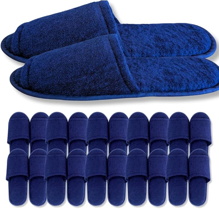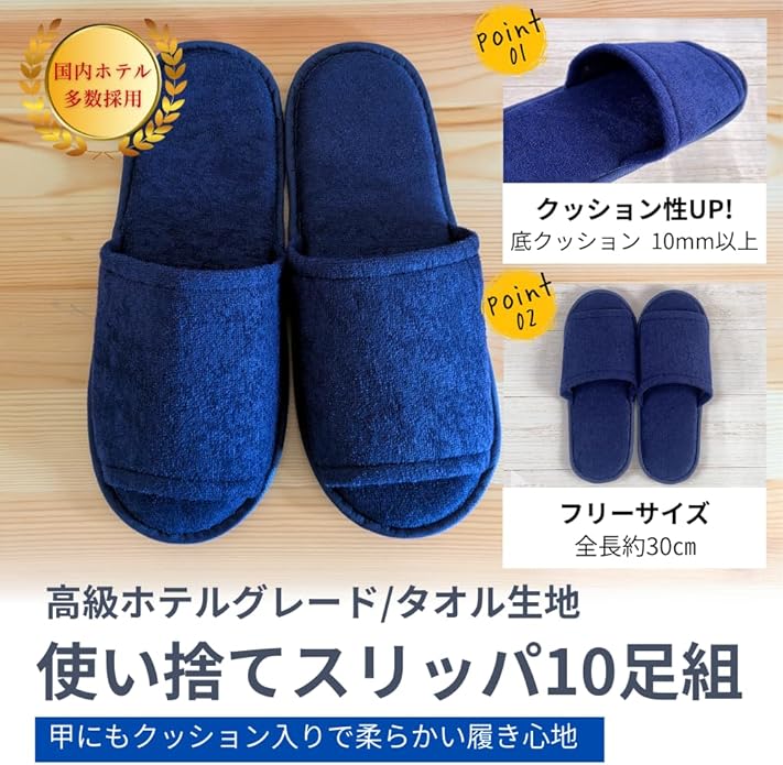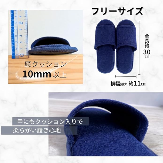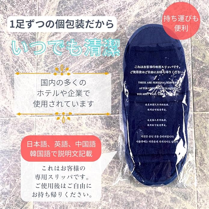 [EaseLiving] 捨てるのがもったいない 使い捨てスリッパ 個包装【タオル生地】 10足 高級 厚手 ホテルや企業で採用 業務用 来客用 防災 機内用 ネイビー