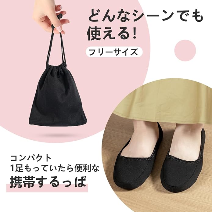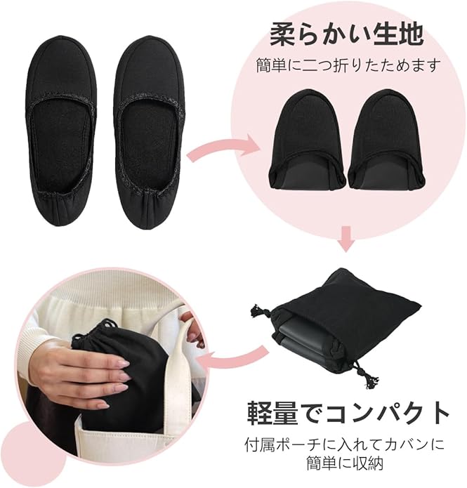 [amifun] 携帯用スリッパ レディース 折りたたみスリッパ 入学式 卒業式 洗濯可 洗える おしゃれ シンプル ルームシューズ 防災 使い捨て ry旅行 コンパクト収納 専用ポーチ付き