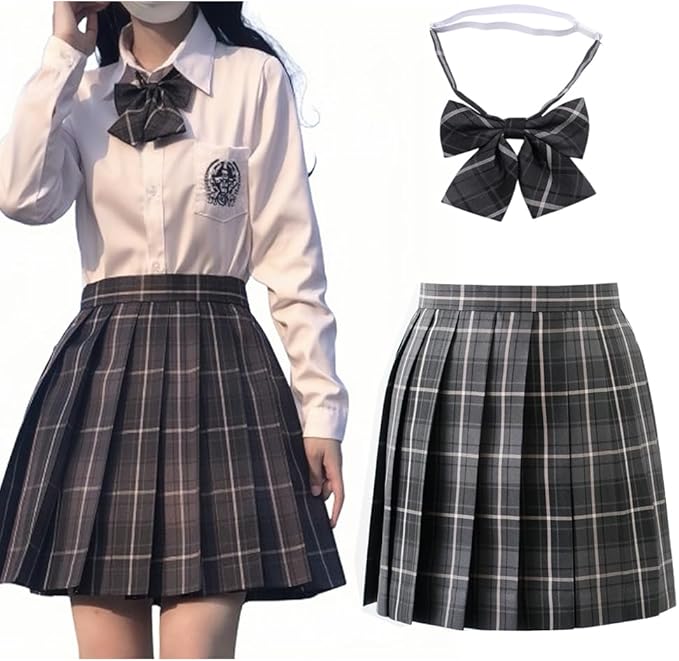 [Limspace] 制服スカート プリーツスカート 2点セット ミニスカート チェック柄スカート 同柄リボン 可愛い 女子高校生 コスプレ スクール ハロウィン 高校生 セット 遊園地 卒業式 JK制服 女子高生 学生服