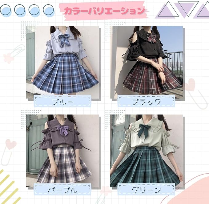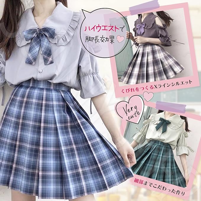 [SUNNYSTEP] JK 制服 コスプレ S~6L 大きいサイズ 肩出し セクシー チェック柄 スクール制服 上下セット セーラー服 正統派 学生服 フル セットアップ ミニスカート プリーツスカート かわいい コスチューム ゆったり