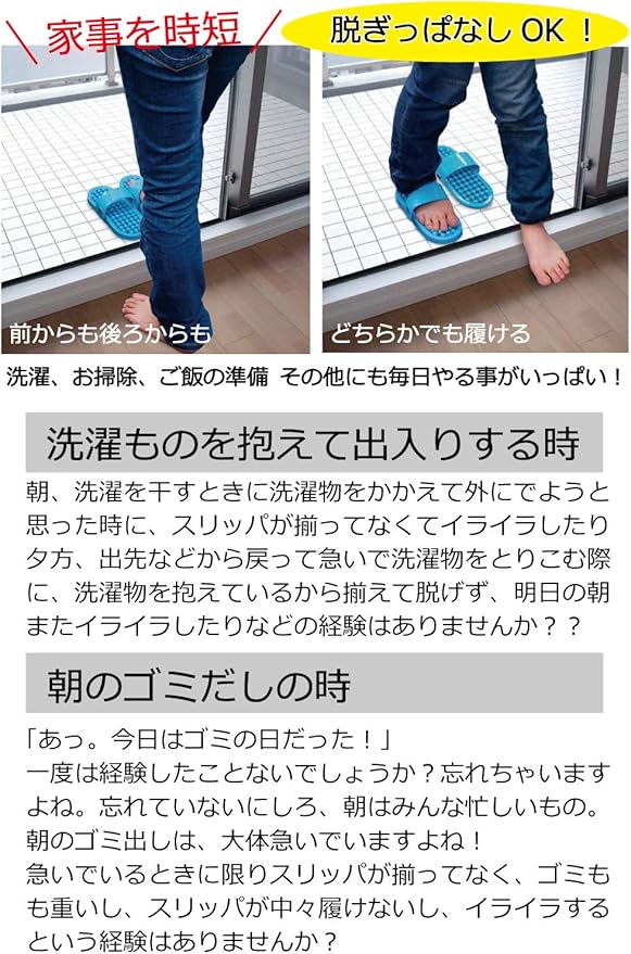 どちらの方向からも履けるので、揃える手間がかからず、楽チンです♪