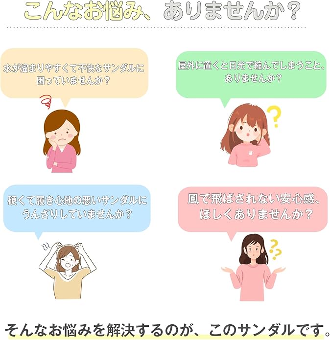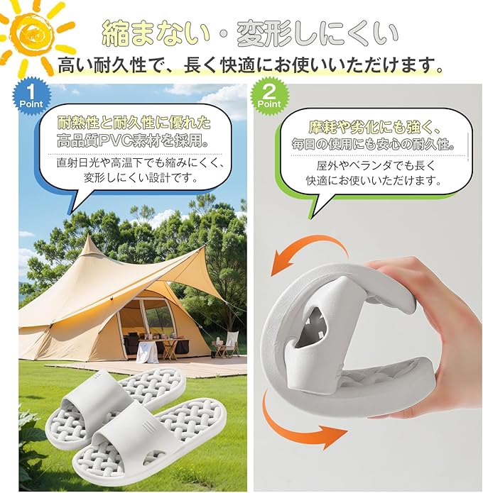 【熱に強く縮まない】PVC素材で熱に強いサンダルとして設計!直射日光でも縮まない、強風でも風に強い耐久性でベランダに最適。