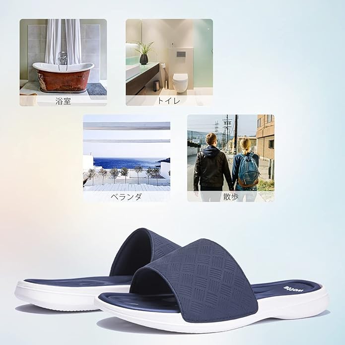 【適用場所】デザインがおしゃれなサンダル、お風呂、温泉、トイレ、病院、介護所など室内用に適するだけでなく、ベランダ、コンビニ、仕事、散歩、ちょっと出掛けるなど室外サンダルとしてもおすすめです。