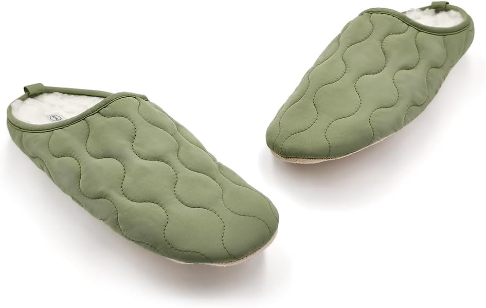 アッパーは柔軟性に優れた合繊仕上げ、床から冷気をしっかり隔離し、暖かくて秋冬にビッタリ「ルームシューズ」