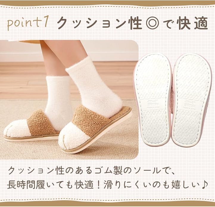 【商品紹介】ネコをモチーフにした見た目もかわいらしいルームスリッパ!履き心地もよく寒い冬でも快適にご利用いただけます。
