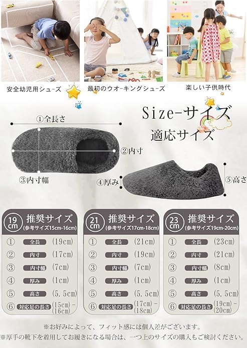 ❄【子供 スリッパ】: ガールズ/ボーイズ 【サイズ】❄19cm:参考サイズ(対応となる足長さ)15-16cm ,全長19cm, 内ソール17cm❄21cm:参考サイズ(対応となる足長さ)17-18cm ,全長21cm, 内ソール19cm❄23cm :参考サイズ(対応となる足長さ)19-20cm,全長23cm,内ソール21cm【主な材質】:ポリエステル (マイクロファイバー繊維) 底面:防水PVC 【重さ】(約)50g(片方)、履け心地よく歩きやすい、長時間履いても超快適!足の形や重さは人それぞれなので、一つ上のサイズを購入することをお勧めします。