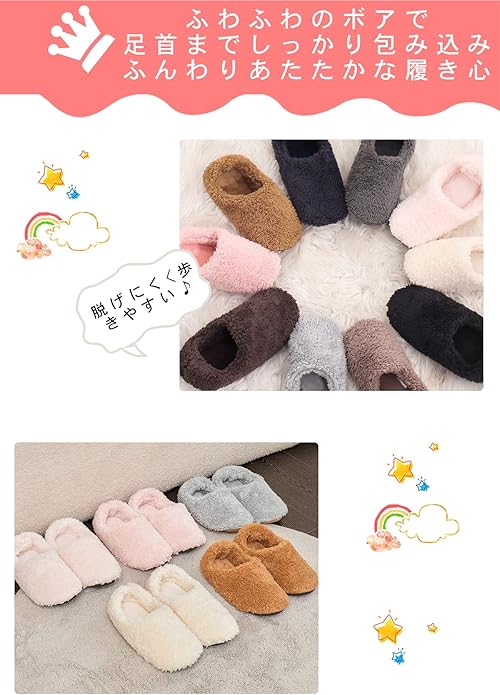 [encologi] キッズ スリッパ 子供 スリッパ ルームシューズ キッズ もこもこ子供 スリッパ ボアスリッパ こども用暖か 秋冬 可愛い あったか スリッパ もこもこ シューズ 洗える 室内用 静音で軽量 防寒 滑り止め キッズ シューズ 足保護