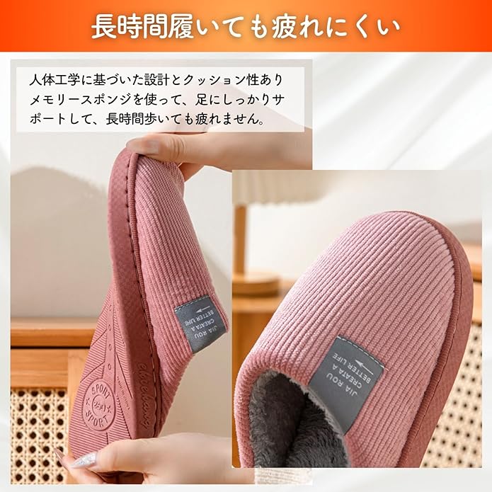 【履き心地がいい】冬用サンダルは人体工学に基づいた設計とクッション性ありメモリースポンジを使って、足にしっかりサポートして、長時間歩いても疲れません。