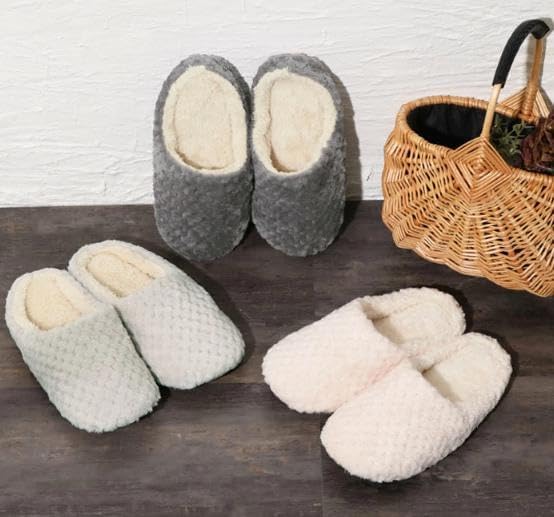 ☆おうちリラックスの質が変わる、コーデュロイとマイクロワッフルとの違いも、両方が見た目も温かいふっくらシューズ♪ ☆秋冬の足元に、ぬくもりと彩りのコーデュロイの畝が、優しく冷えから守ってくれます♪