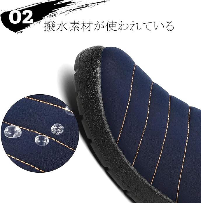 撥水生地: 表には撥水素材を採用し、生活防水レベルに達し、キッチンまたバスルームでも靴を濡れることを心配なく、お手入れも便利です(ご注意: 100%全面防水処理ではありません)