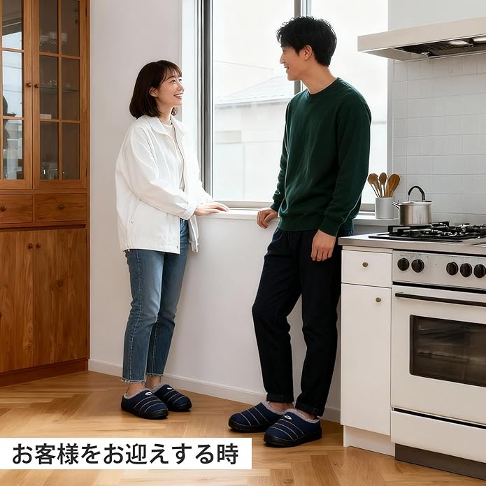 様々なシーンで活躍: このルームシューズは室内履きはもちろんのこと、散歩、買い物、ちょっとしたお出かけなど様々なシーンで活躍しています