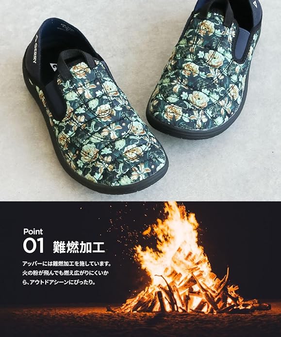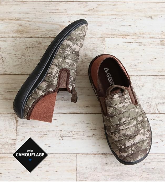 毎日履きたくなるとっても軽くて楽な履き心地のモックシューズ! アウトドアユ毎日履きたくなる様な、とっても軽くて楽な履き心地を提供するgerryのモックシューズ! アッパーには難燃加工をしているので、焚火やBBQの火の粉が飛んでも燃え広がりにくい。 カカトを踏んでも履ける2WAY仕様で脱ぎ履きがとっても便利。 更に超軽量設計で足への負担を軽減。 インソールはふかふかと弾力のある高反発クッションを採用。 カップインソールタイプで取り外すこともでき靴の中を清潔に保てます。 どんな路面でも歩きやすい屈曲性の豊かなアウトソール。 防滑ソールが地面をしっかりとグリップしてくれます。 キャンプ・アウトドア、タウン履き、ちょっとしたお出かけにもおすすめです。 ※こちらの商品は標準の「S/M/L/LL」よりも小さめです。 ご購入の際は(~cm)の表記を目安にサイズをお選びください。