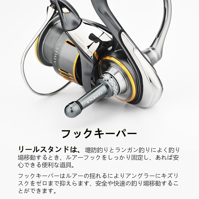 ゴメクサス R1 リールスタンド 42mm スピニングリール 保護用 ルビアス セフィア ツインパワー ストラディック ナスキー 対応 フック掛け バランサー アルミ製 ランガン釣り アジング ライトゲーム 6.9g超軽量 釣り道具 簡単取り付け