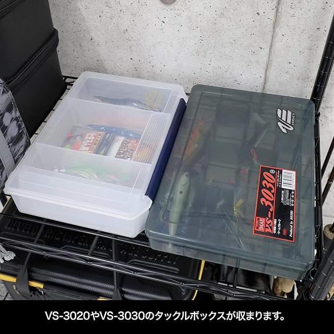●ワイヤーフックにラインのボビンを吊ることも可能 ●キャスター付属。2個はストッパー機能付き ●オリジナルDRESSロゴプレート付属 ■セット内容: ・ロッドホルダー(上下) 2 ・キャスター 4 ・シェルフ 3 ・ワイヤーフック 6 ・DRESSロゴプレート