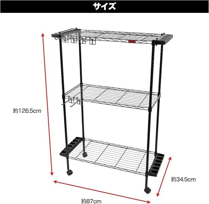 ドレス(DRESS) メタル フィッシングラック 釣り 釣り具 ロッドスタンド ロッドホルダー 収納 棚 頑丈 大容量 鑑賞用 キャスター スチールラック メタルラック