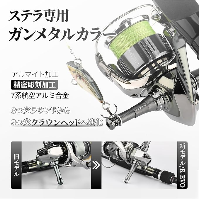 【対応機種】シマノ、ダイワリールの一部。お手持ちのリールと対応表をご確認頂き、お好みのカラーをお選び下さい。機種について、お分からない場合は是非お問い合わせください。★ご注意:1000‐2000の機種の装着部が短くて、脱落する恐れがありますので、おすすめいたしません。19 セルテート 5000に対応できません