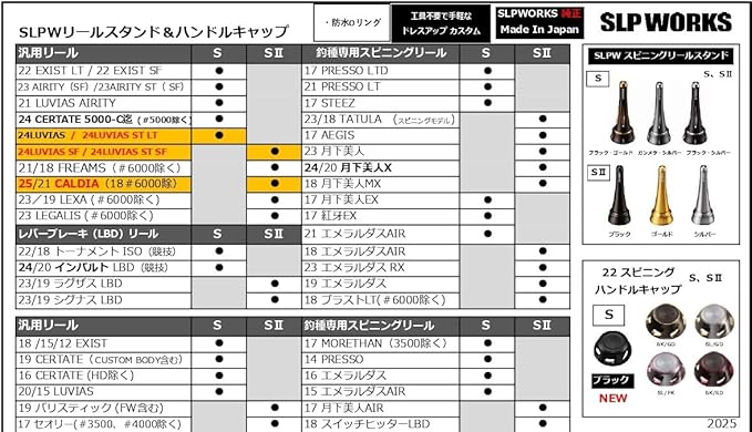 【注意】: タイプによって「デザイン」と「対象機種」が異なります。「SLP WORKS 製品対応検索」から装着可否を確認した上でご購入を検討してください。 / 本商品は地面接触時に生じる、リール本体への「キズの軽減・予防」するためのアイテムです。また「フックキーパー、ラインストッパー」は未搭載です。