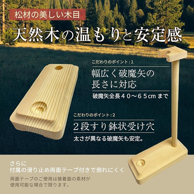 ☑【やわらかなデザイン】台座にはやわらかな曲線を活かしたデザインを採用。和室はもちろん、和モダンな空間にも溶け込む上品な仕上がりで、破魔矢を引き立てる丁寧な造形となっています。