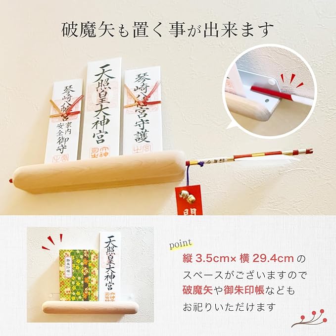 ✅木製ならではの温かみと高級感を兼ね備えたお札立てで、破魔矢や神札ホルダーとしても活躍。省スペースで賃貸住宅にもぴったりな簡易神棚としても人気です。