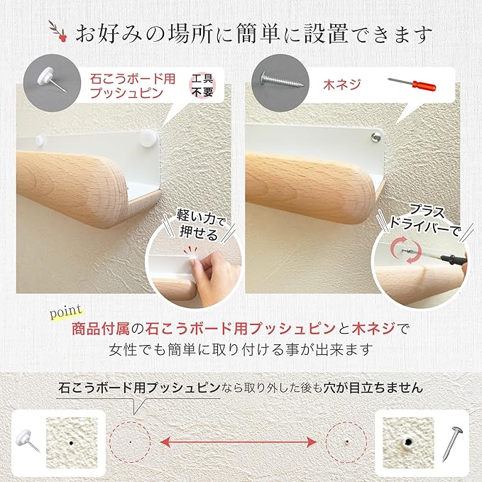 ✅壁掛け仕様のため、お札や神札を置く場所に困っていた方にもおすすめ。穴を開けずに使えるため、賃貸でも安心して使えるのが嬉しいポイントです。